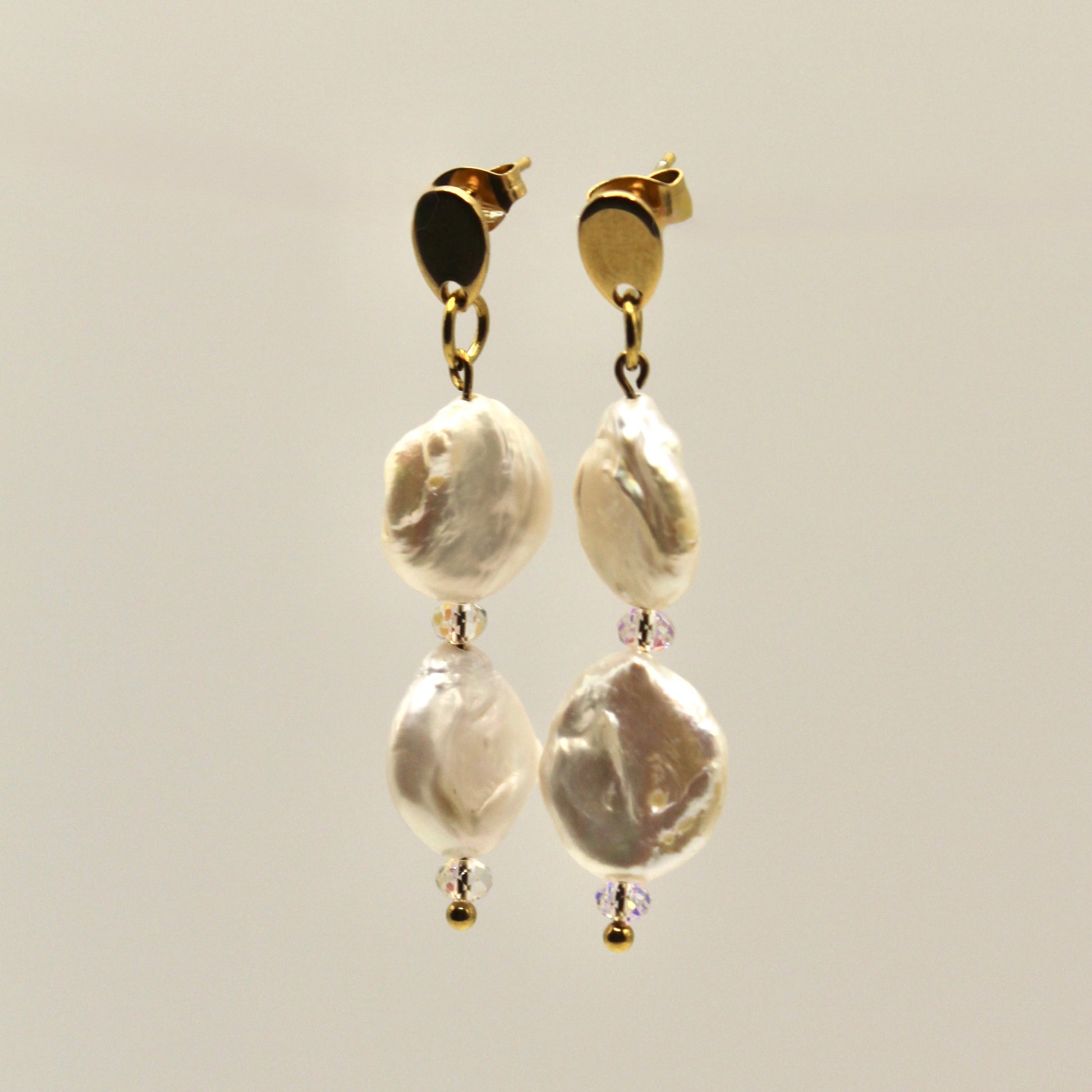 Découvrez les Boucles Vénus, des boucles d'oreilles pendantes qui jouent avec la lumière ! Confectionnées en acier inoxydable résistant, elles associent l'élégance brute des perles d'eau douce baroque aux reflets chatoyants des perles de verre à facettes multicolores. Chaque paire est unique, fabriquée à la main, avec ses imperfections charmantes qui racontent une histoire. Légères et confortables, elles ajoutent une touche bohème, chic, et pétillante à votre style, du quotidien aux occasions spéciales.