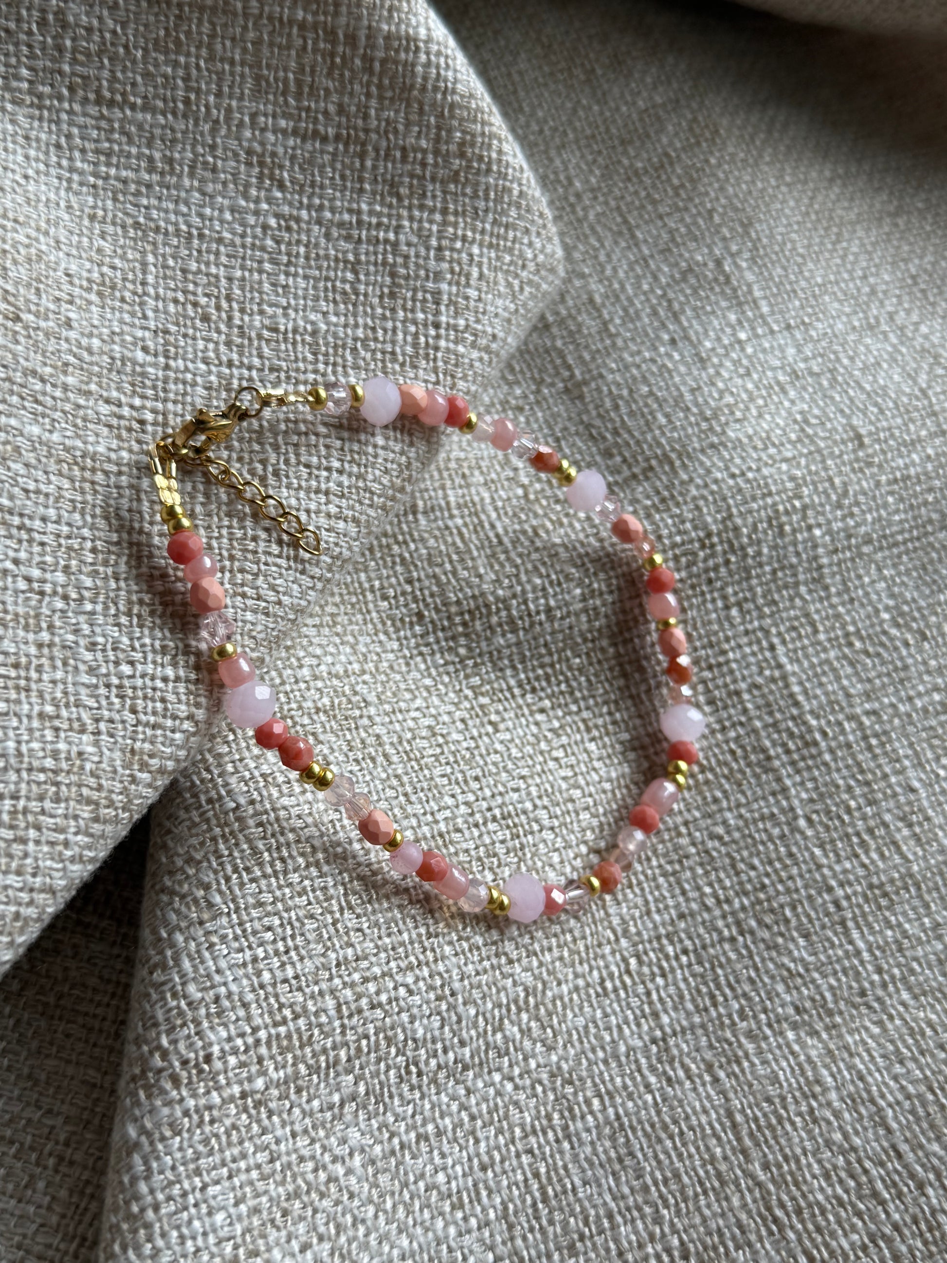 Notre bracelet de cheville Komodo, vous emmène sur le sable de rose d’une plage en Indonésie. Il apporte une touche de fraîcheur à votre look, grâce à ses perles à facettes et ses dorures discrètes. Fabriqué artisanalement, avec un fermoir en acier inoxydable, ce bracelet de cheville est robuste et durable, vous assurant un look élégant longtemps. Si vous en prenez soin, vous pouvez le porter au quotidien sans qu’il ne ternisse.