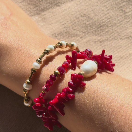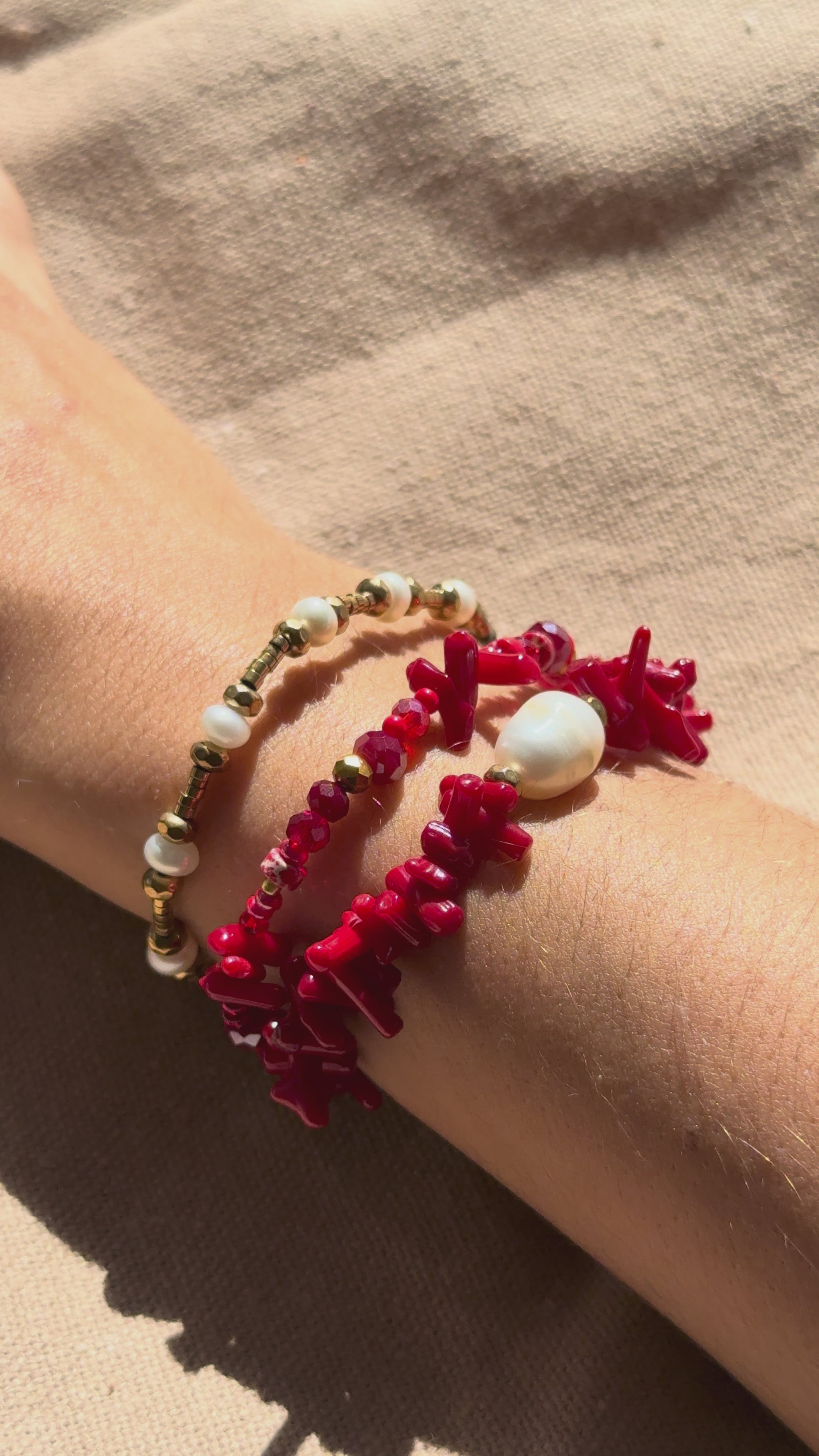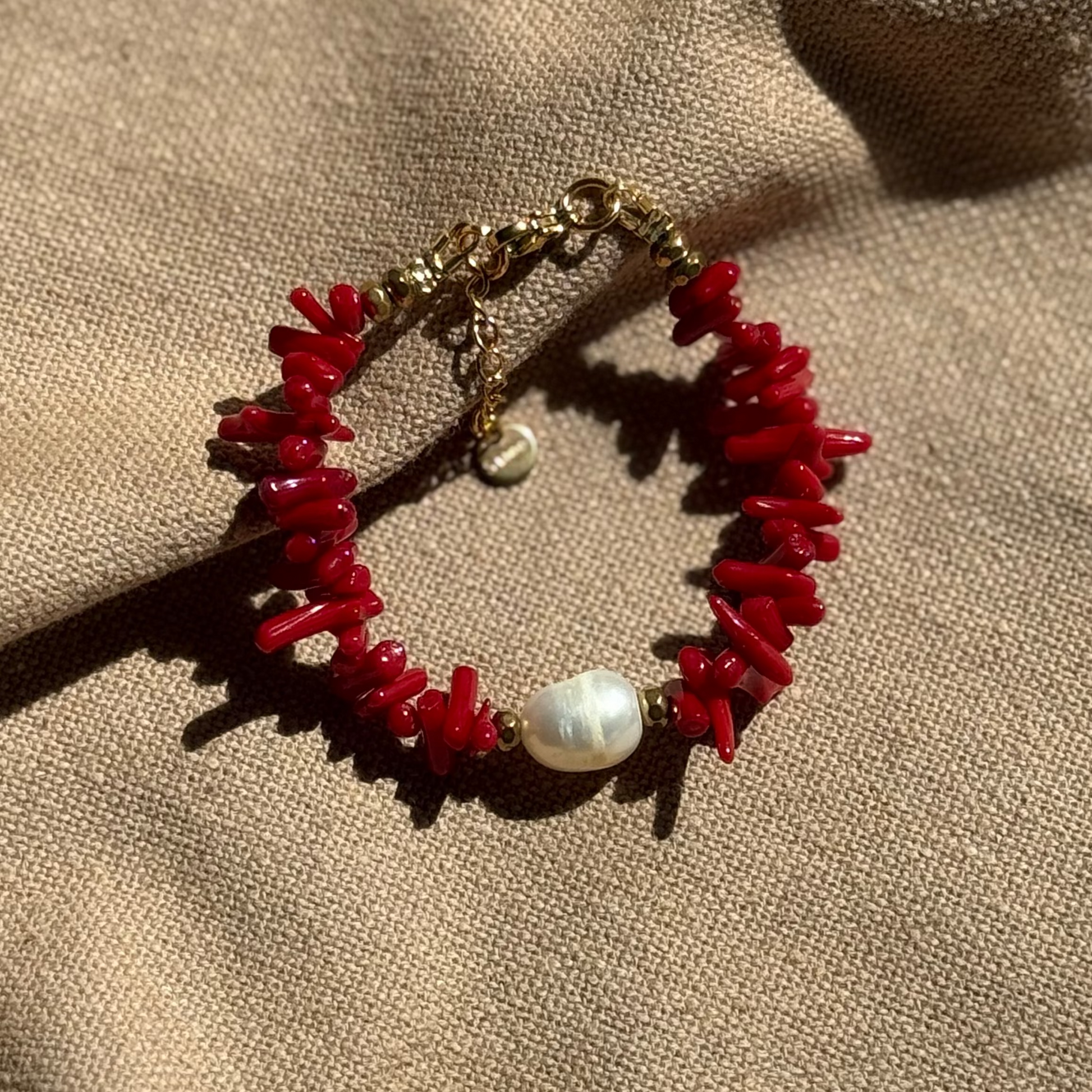 Notre bracelet Papua, vous transporte en Papouasie. Il apporte une touche d'originalité à votre look, grâce à ses perles de corail et sa perle d'eau douce naturelle. Fabriqué artisanalement, avec un fermoir en acier inoxydable, ce bracelet est robuste et durable, vous assurant un look élégant longtemps. Si vous en prenez soin, vous pouvez le porter au quotidien sans qu’il ne ternisse.