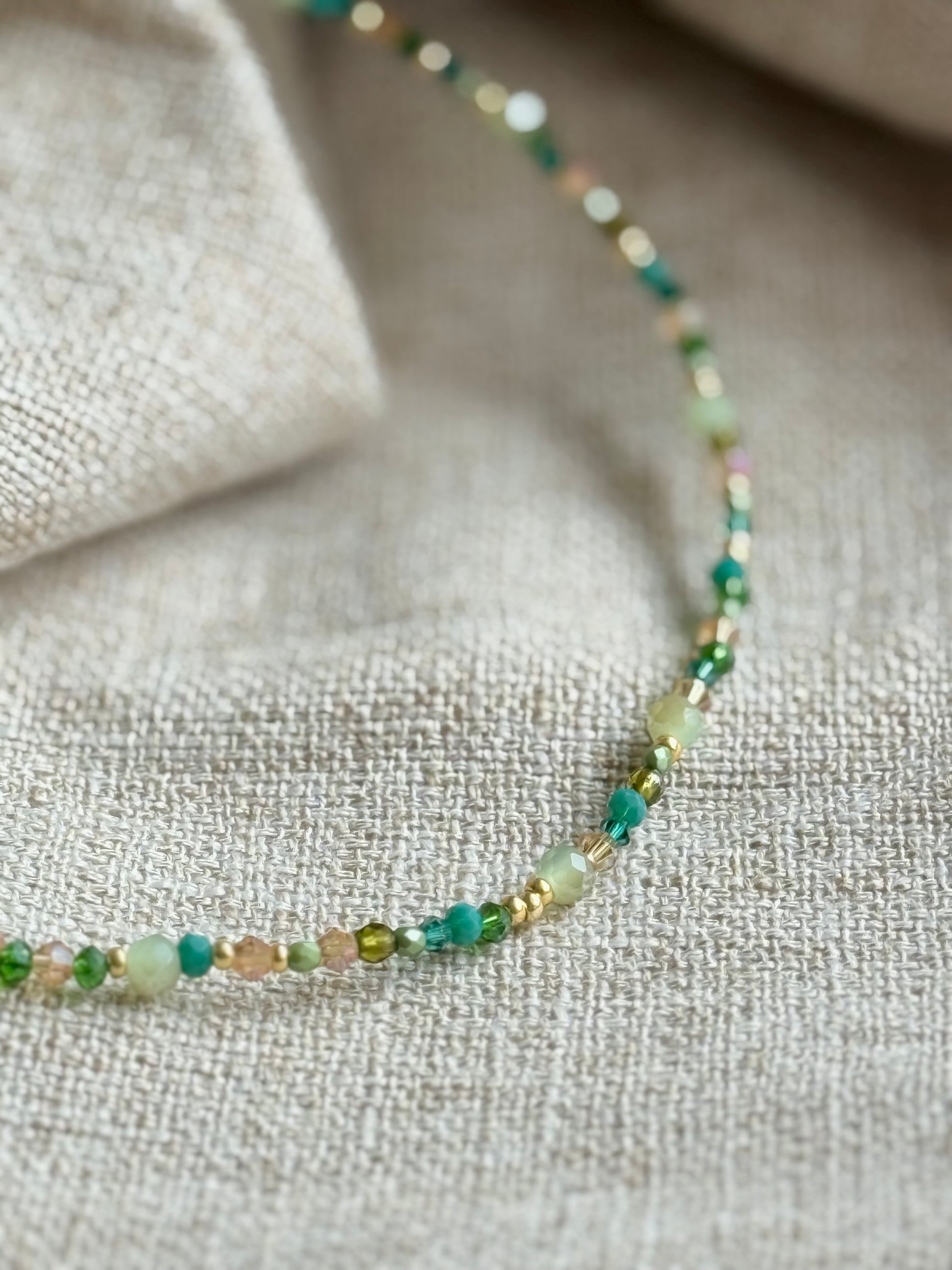 Notre collier Amazonie, en ras de cou, vous transporte jusqu’en Amazonie, pour survoler la plus belle et la plus dense des forêts tropicales. Il apporte une touche de fraîcheur et de couleurs à votre look, grâce à ses perles à facettes colorées et ses dorures discrètes. Fabriqué artisanalement, avec un fermoir en acier inoxydable, ce collier est robuste et durable, vous assurant un look élégant longtemps. Si vous en prenez soin, vous pouvez le porter au quotidien sans qu’il ne ternisse.