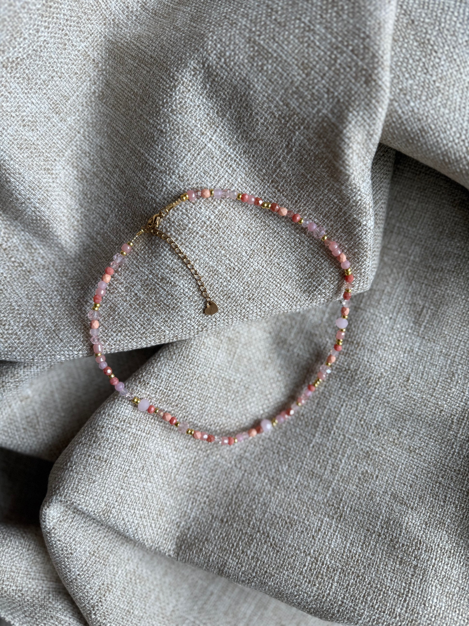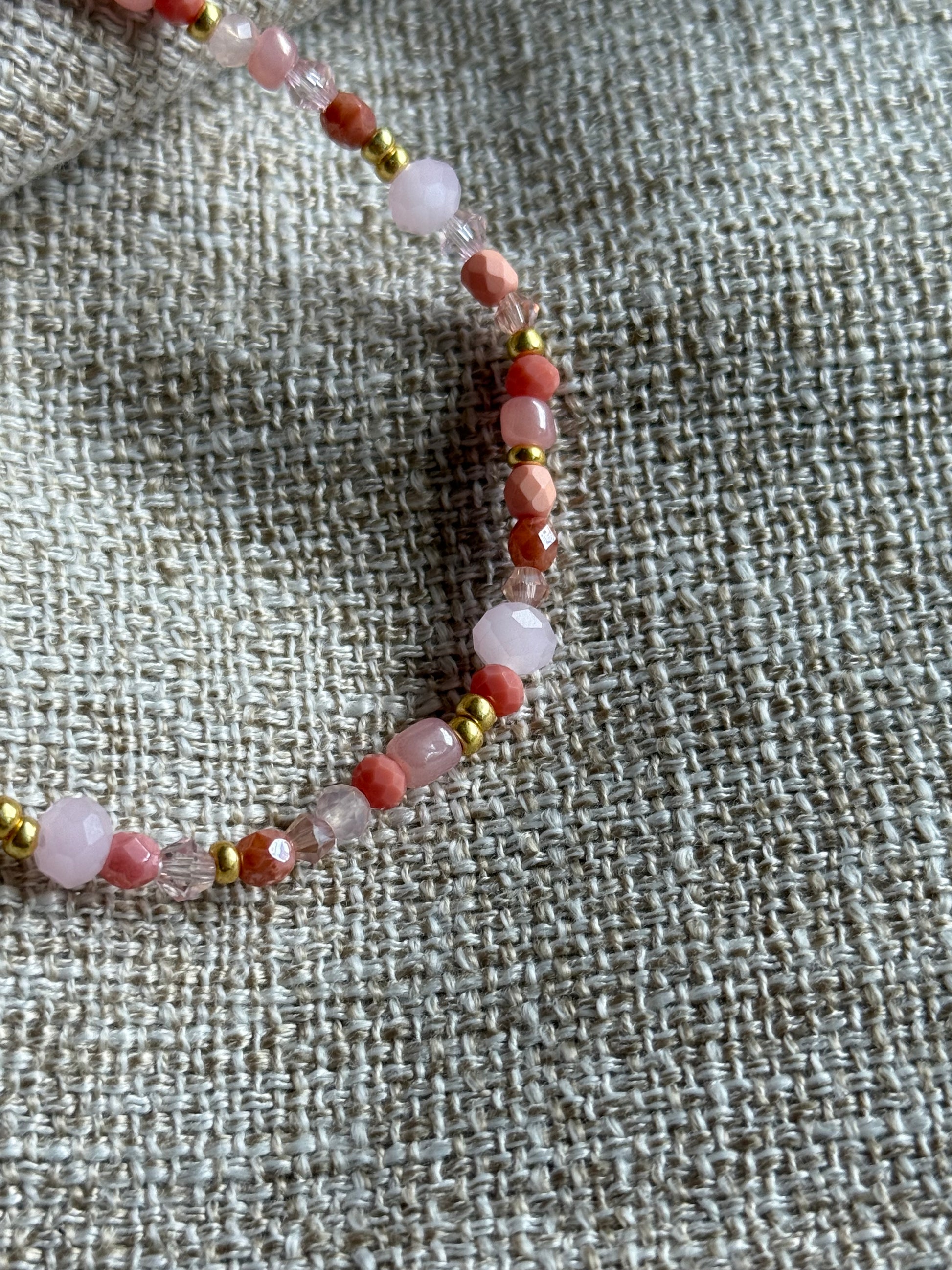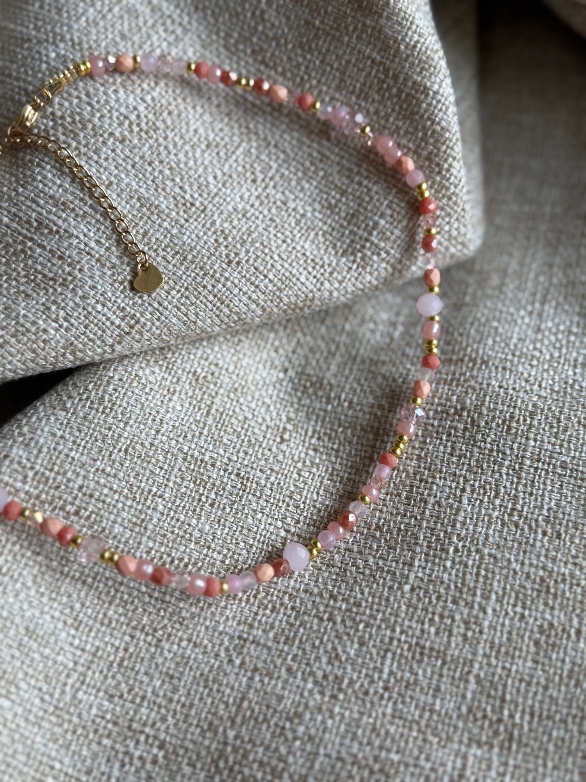 Notre collier Komodo, en ras de cou, vous transporte direction une merveilleuse plage de sable rose en Indonésie. Il apporte une touche de fraîcheur et de couleurs à votre look, grâce à ses perles à facettes colorées et ses dorures discrètes. Fabriqué artisanalement, avec un fermoir en acier inoxydable, ce collier est robuste et durable, vous assurant un look élégant longtemps. Si vous en prenez soin, vous pouvez le porter au quotidien sans qu’il ne ternisse.