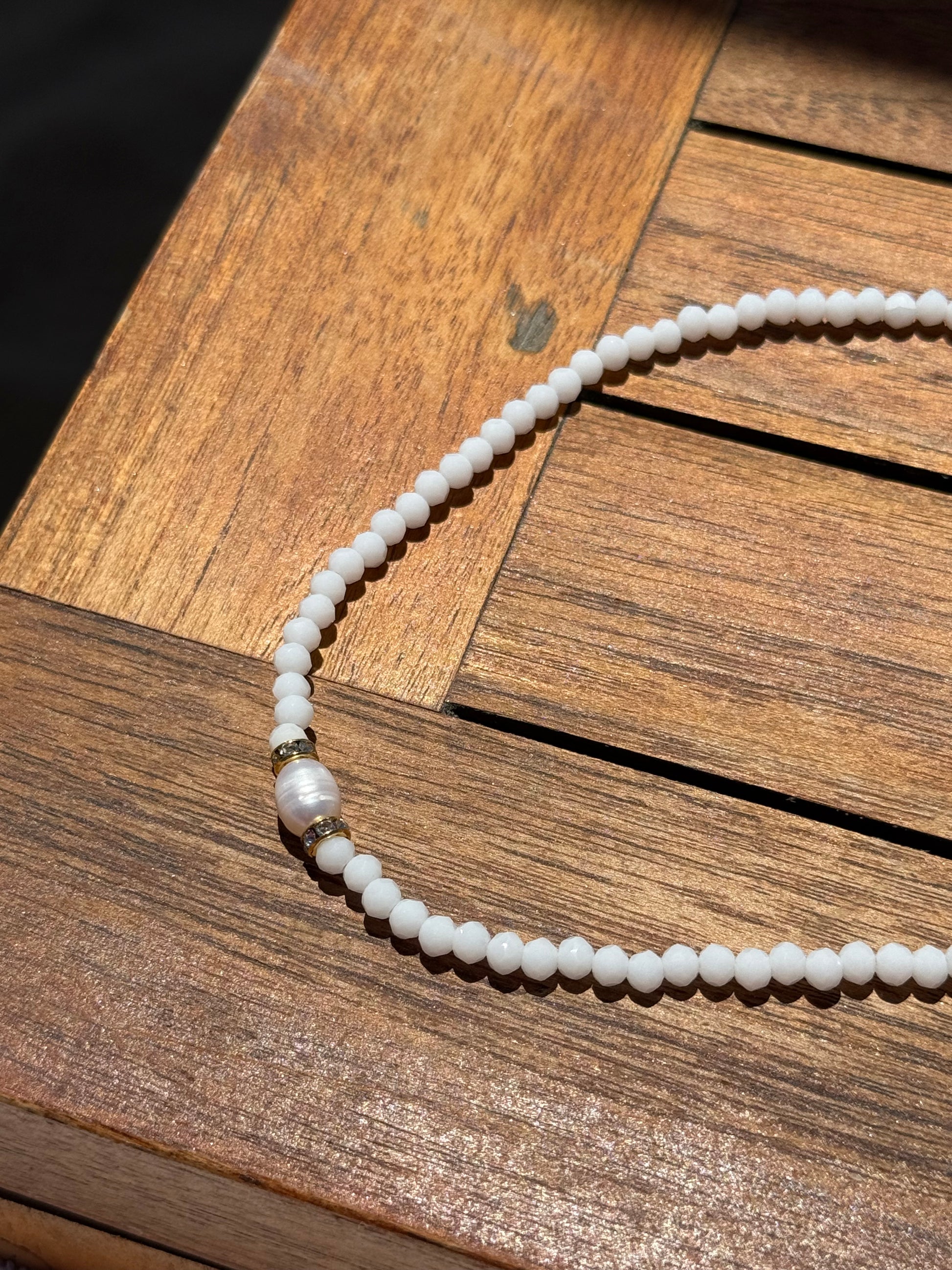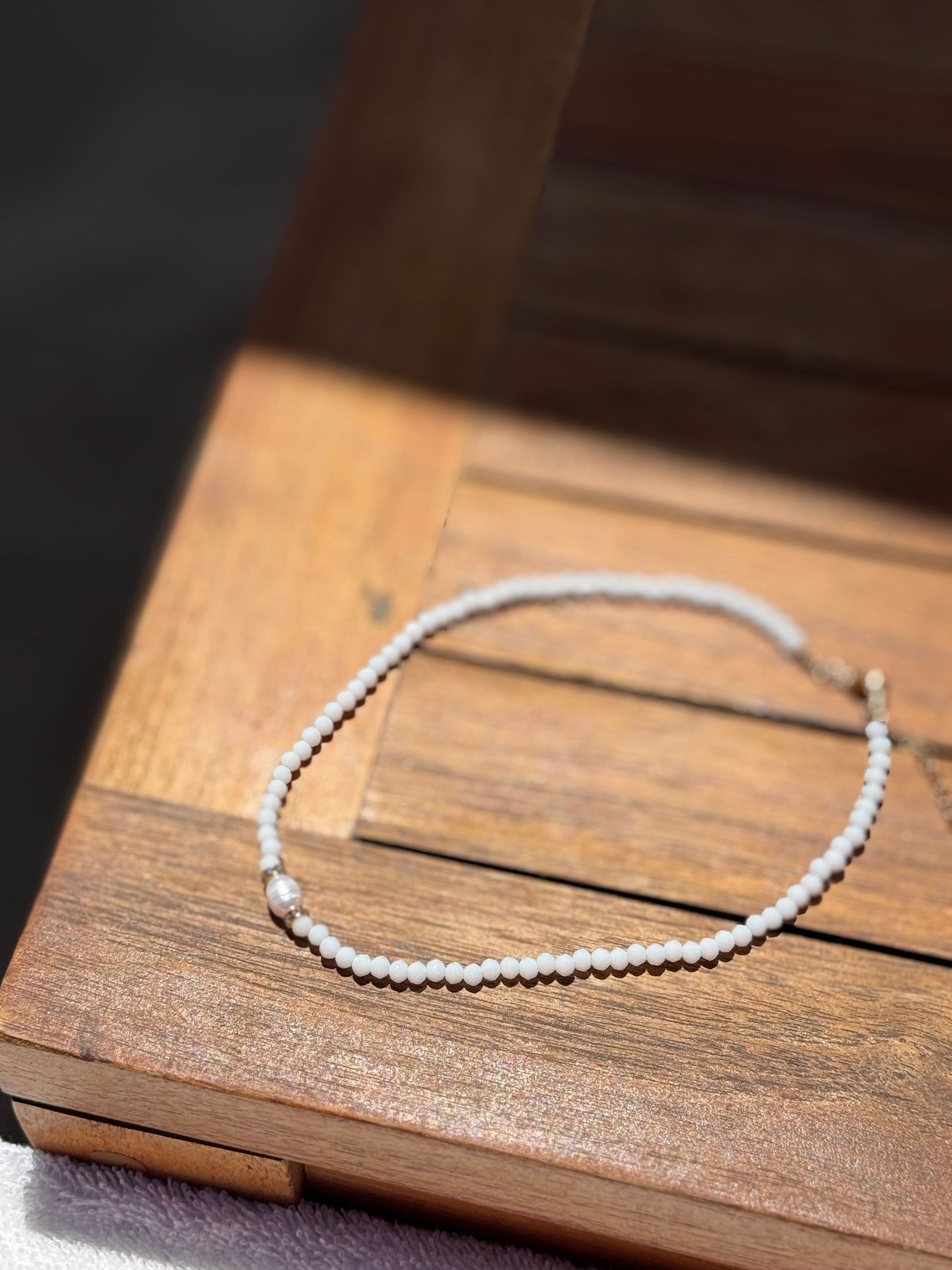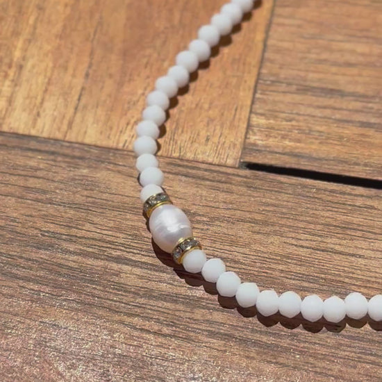 Notre collier Mahé, en ras de cou, vous transporte jusqu’aux Seychelles. Il apporte une touche de fraîcheur et de couleurs à votre look, grâce à sa jolie perle d’eau douce naturelle et ses perles à facettes blanches. Fabriqué artisanalement, avec un fermoir en acier inoxydable, ce collier est robuste et durable, vous assurant un look élégant longtemps. Vous pouvez le porter au quotidien sans qu’il ne ternisse.