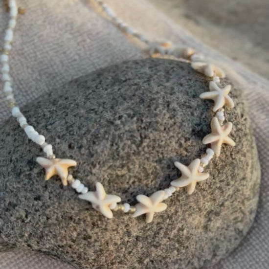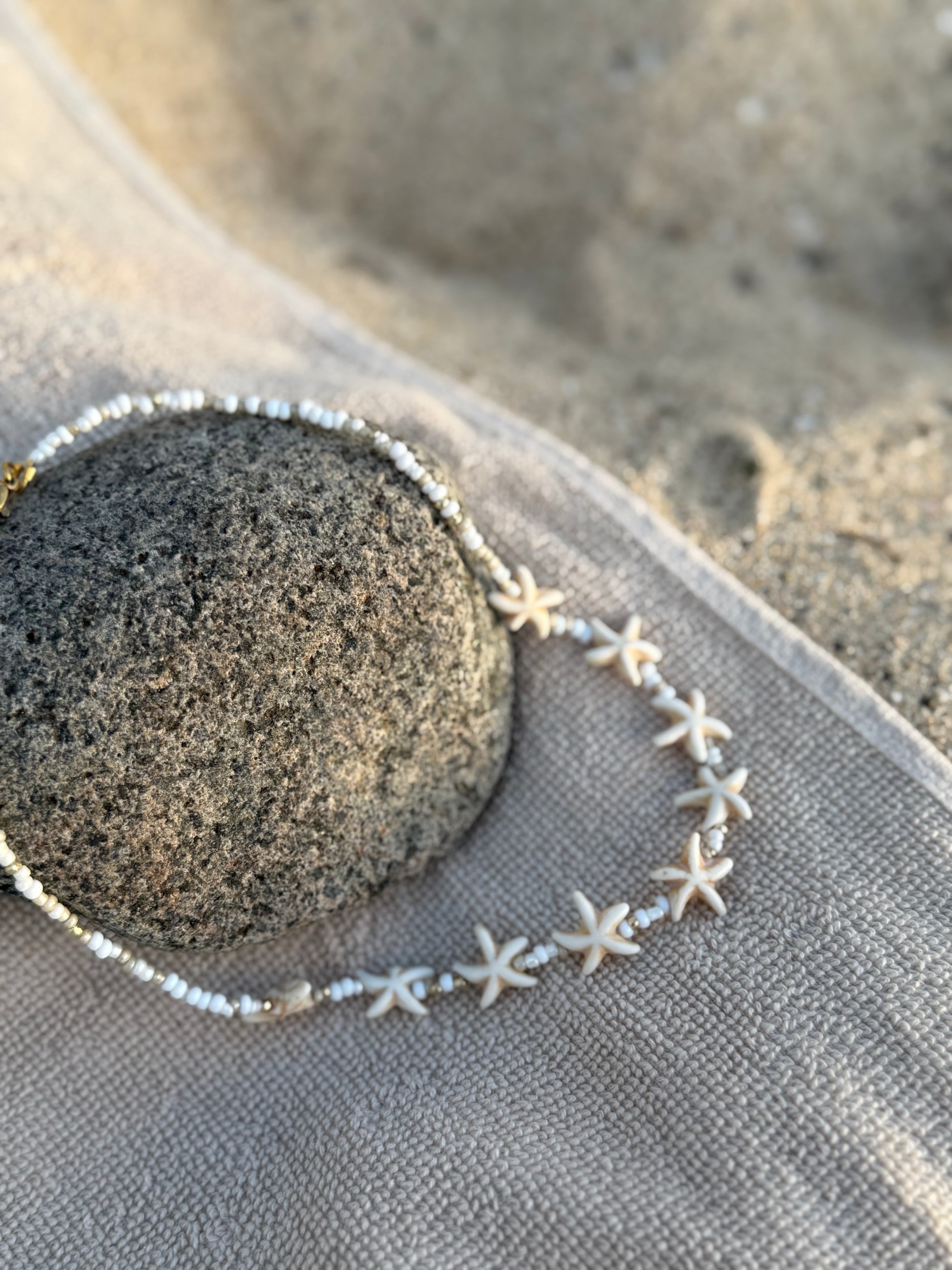 Notre collier Starfish, ras de cou, apporte une touche de fraîcheur à votre tenue avec ses perles de rocailles blanches et ses étoiles de mer. Fabriqué artisanalement, avec un fermoir en acier inoxydable, ce collier est robuste et durable, vous assurant un look élégant longtemps. Vous pouvez le porter au quotidien sans qu’il ne ternisse.